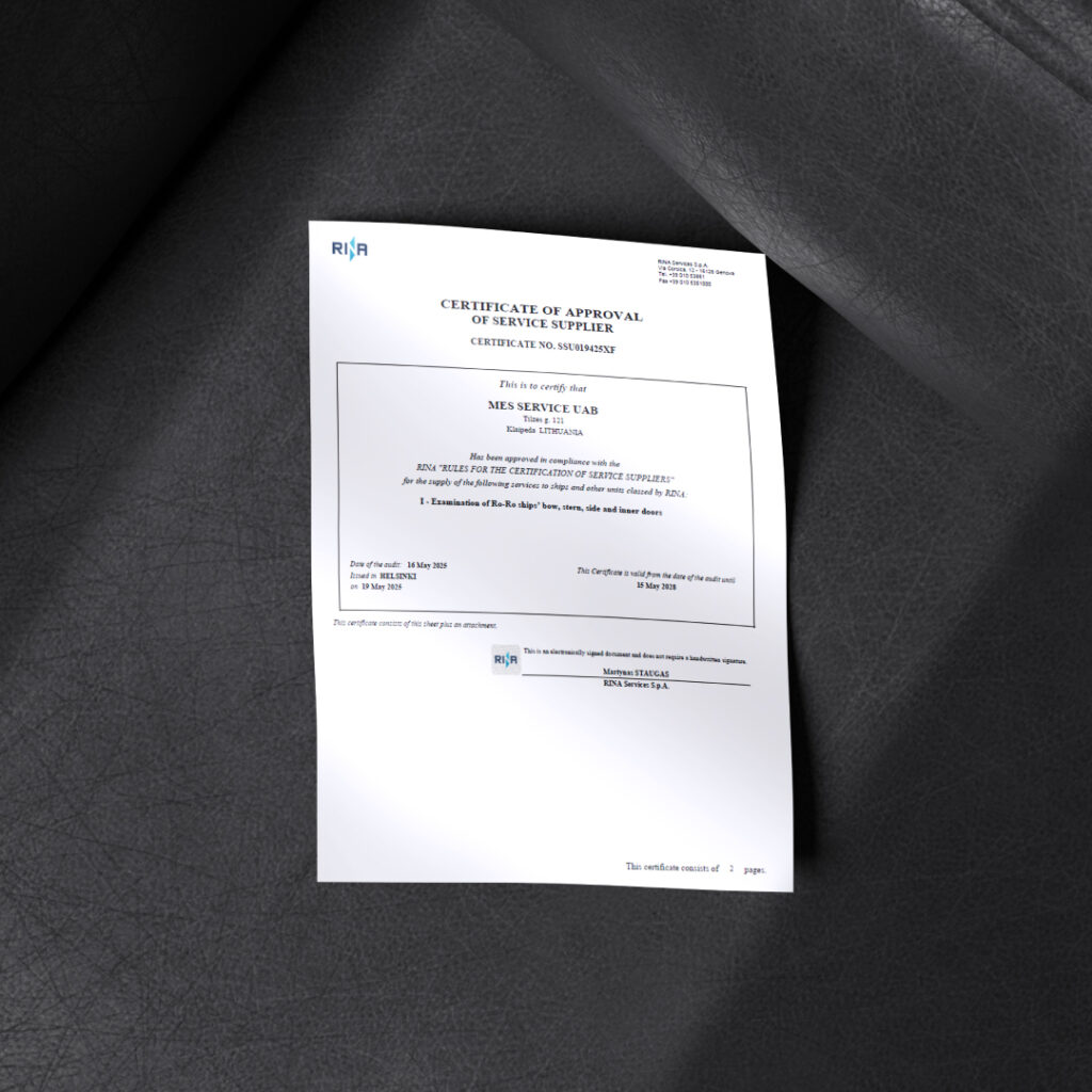 We’re proud to share that we have been officially approved by RINA Services S.p.A. for the inspection of RoRo ships’ bow, stern, side, and inner doors.